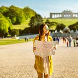 Il est temps de découvrir les fabuleux jardins de Schönbrunn ! Flânez dans le parc du château, admirez la fontaine de l'Ange et la Gloriette. Facultatif : évitez les files d'attente pour explorer l'opulent palais de Schönbrunn.
